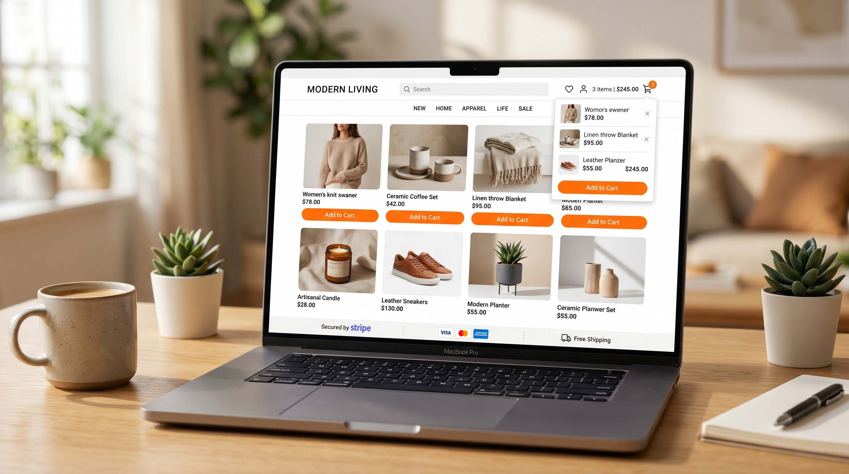A fully functional e-commerce platform with integrated payments, inventory management, and conversion optimization. Ready to start selling immediately.